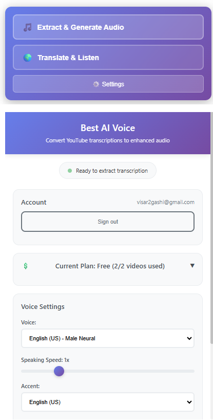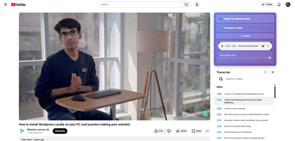 No need to upload files. BestAIvoice works right in your browser on YouTube, Vimeo, embedded lectures, webinars — anywhere there’s an embedded video.